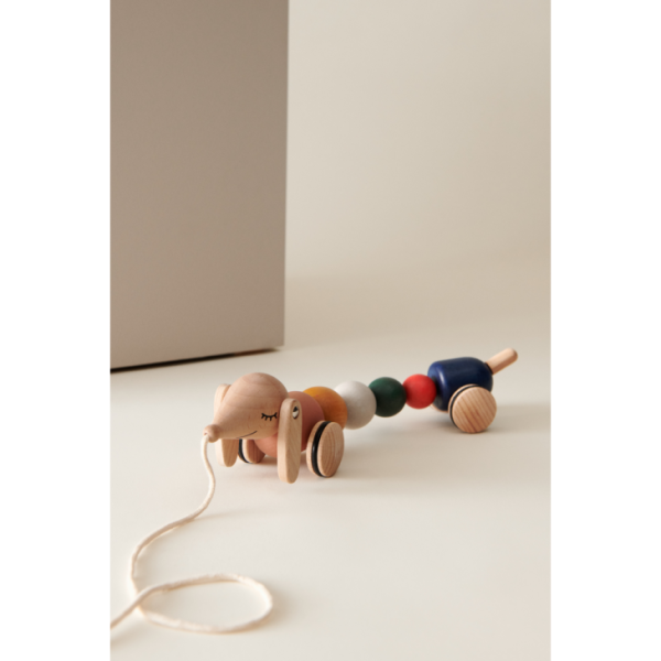 Meet Barthes, the sweet little Daschund dog crafted from solid Beechwood that excites children with its playful wobbly movements when taken for a walk. A timeless toy that adds charm to its surroundings with its colourful and decorative yet classic design.