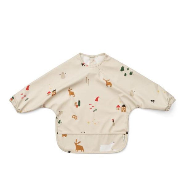Lightweight cape bib for babies and toddlers learning to eat on their own. The elasticated cuffs ensure a snug fit, and the front pocket catches spilt food. Crafted from durable, recycled polyester, the cape bib is easy to clean and can be folded up for compact storage at home or on the go.