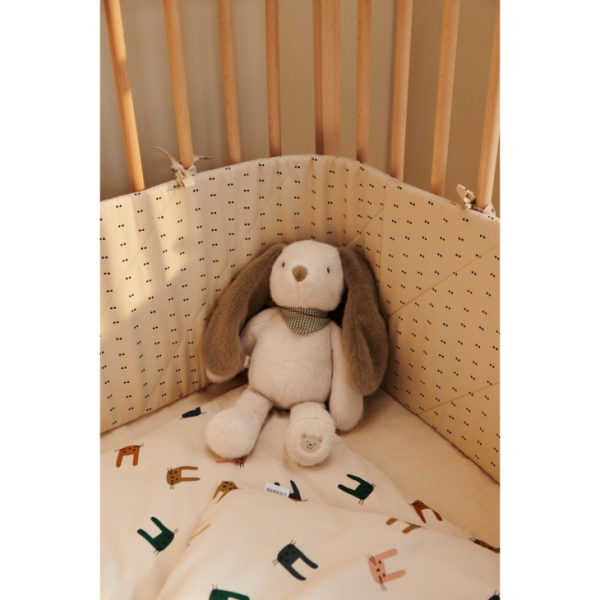 Add soft protection to your child’s bedtime hours with the Benedicte bed bumper. Designed to safeguard against hard bumps, this bumper is securely tied to the bed with durable cords for added safety. Crafted with a blend of polyester and coir filling from coconut husk, it features a breathable mesh structure for enhanced comfort. The removable polyester lining ensures easy maintenance, making the quilted cover washable for added convenience.