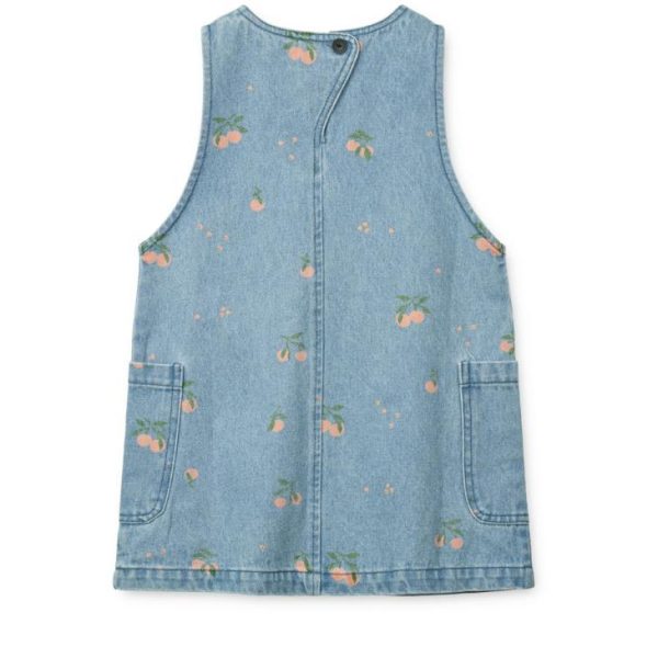 Spencer-style denim dress in a light stone wash gives a cool and relaxed vintage look. It has a loose fit, ensuring comfort while the all-over cute peach print adds a playful twist – making this dress a modern classic for your child’s wardrobe. Pair it with a crisp shirt underneath for a preppy look.