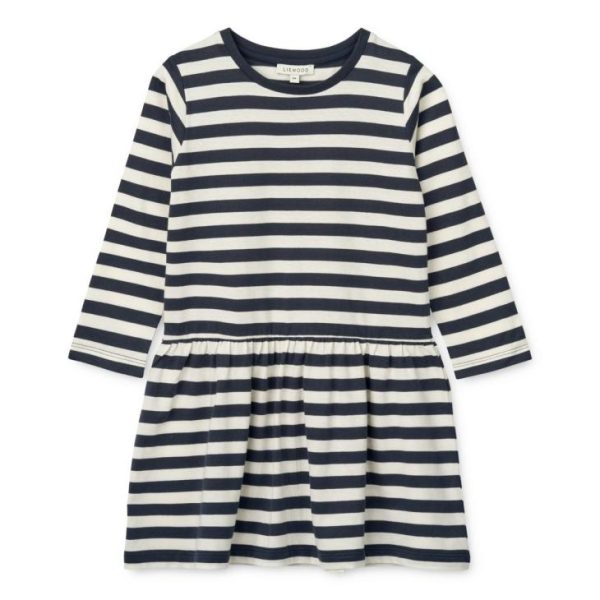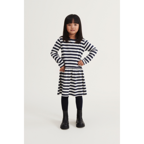 - Organic jersey dress w/ long sleeves • Ribbed crewneck • Gathered waist • Easy everyday style • OEKO-TEX CM020 236747