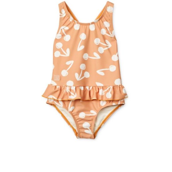 Let your little one jump into the pool or waves in the printed Amara swimsuit. This popular swimsuit offers playful details like a gathered flounce at the waist and crossing shoulder straps at the back.