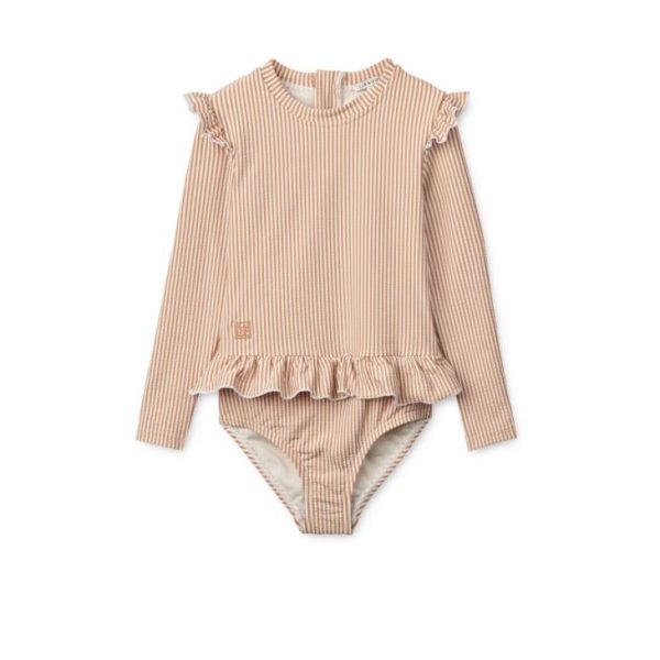 The Sille baby swimsuit combines a playful expression with UV protection for family time spent by the water. Features playful ruffles on shoulders and waist, a back zipper and practical snap button closure at the bottom.