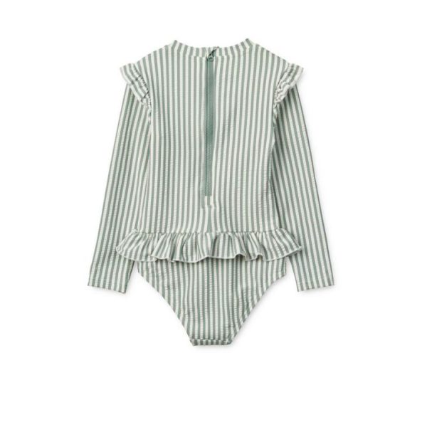 The Sille swimsuit combines a playful expression with UV protection for fun family time spent by the water. Features playful ruffles on shoulders and waist and a practical back zipper.